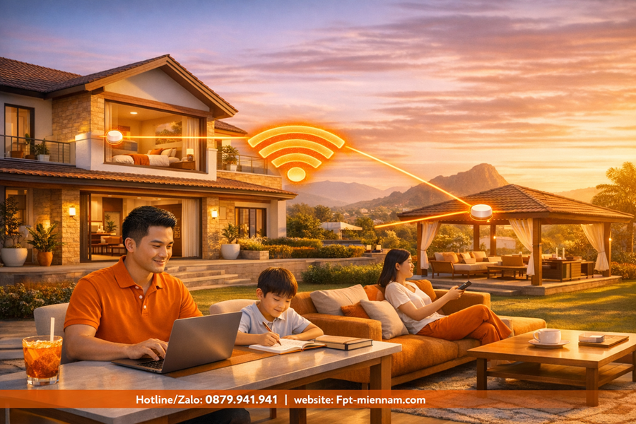 Tại Đắk Lắk, xu hướng sở hữu biệt thự và nhà vườn với diện tích lớn ngày càng phổ biến. Tuy nhiên, thách thức lớn nhất chính là làm sao để sóng Wifi có thể bao phủ toàn bộ không gian từ trong nhà ra đến sân vườn mà không bị chập chờn hay mất kết nối. FPT Telecom mang đến giải pháp Wifi cho biệt thự, nhà vườn tại Đắk Lắk chuyên nghiệp và tối ưu nhất.