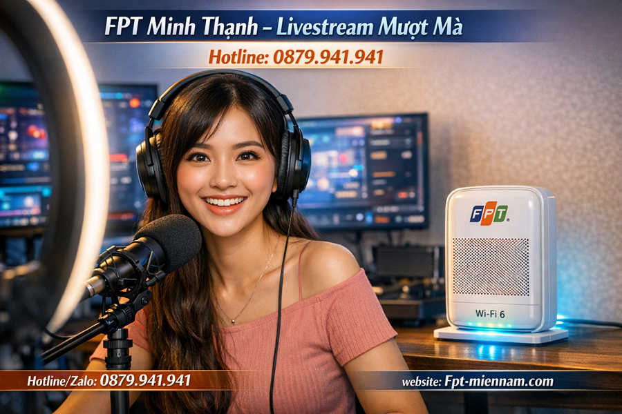 Trong kỷ nguyên số, việc bán hàng online hay trở thành một streamer chuyên nghiệp đòi hỏi một đường truyền internet cực kỳ khắt khe. Dịch vụ Internet FPT Minh Thạnh livestream được thiết kế để đáp ứng hoàn hảo nhu cầu đó với băng thông cực lớn, độ trễ (ping) thấp và khả năng truyền tải dữ liệu ổn định xuyên suốt nhiều giờ liền.