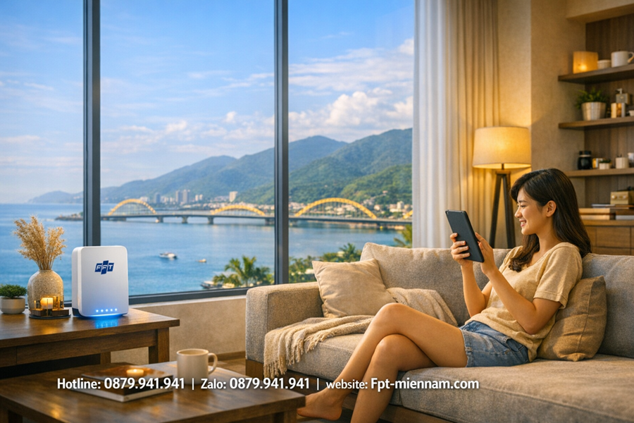 Nếu căn hộ của bạn là dạng Duplex (thông tầng) hoặc Penthouse ven biển có diện tích rộng, kỹ thuật viên FPT sẽ tư vấn triển khai thêm hệ thống Access Point hoặc Mesh Wi-Fi để tạo ra một mạng wifi đồng nhất, phủ sóng căng vạch tới từng phòng ngủ và ban công ngắm biển.