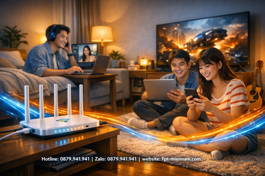 • Tốc độ băng thông vượt trội: Sở hữu các gói cước mở băng thông lên đến $1\text{ Gbps}$, hiện tượng giật lag khi xem video $4\text{K}$, chơi game hay họp trực tuyến gần như bị triệt tiêu hoàn toàn.