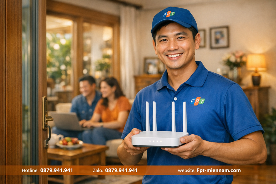 • Quy trình: Sau khi tiếp nhận thông tin, nhân viên FPT sẽ tiến hành khảo sát hạ tầng thực tế và làm hợp đồng điện tử nhanh gọn. Đội ngũ kỹ thuật viên cam kết sẽ kéo cáp và kích hoạt đường truyền cho bạn trong vòng 24 giờ.