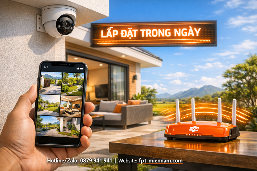 Trong hệ thống camera an ninh hiện đại, đường truyền internet đóng vai trò then chốt. Một đường mạng yếu sẽ khiến hình ảnh bị trễ, nhòe hoặc mất kết nối ngay lúc cần thiết. Dịch vụ Wifi FPT Phù Mỹ Bắc cho camera mang đến giải pháp tối ưu với băng thông Upload cực lớn, giúp việc giám sát qua điện thoại hay máy tính luôn diễn ra mượt mà ở định dạng sắc nét nhất.